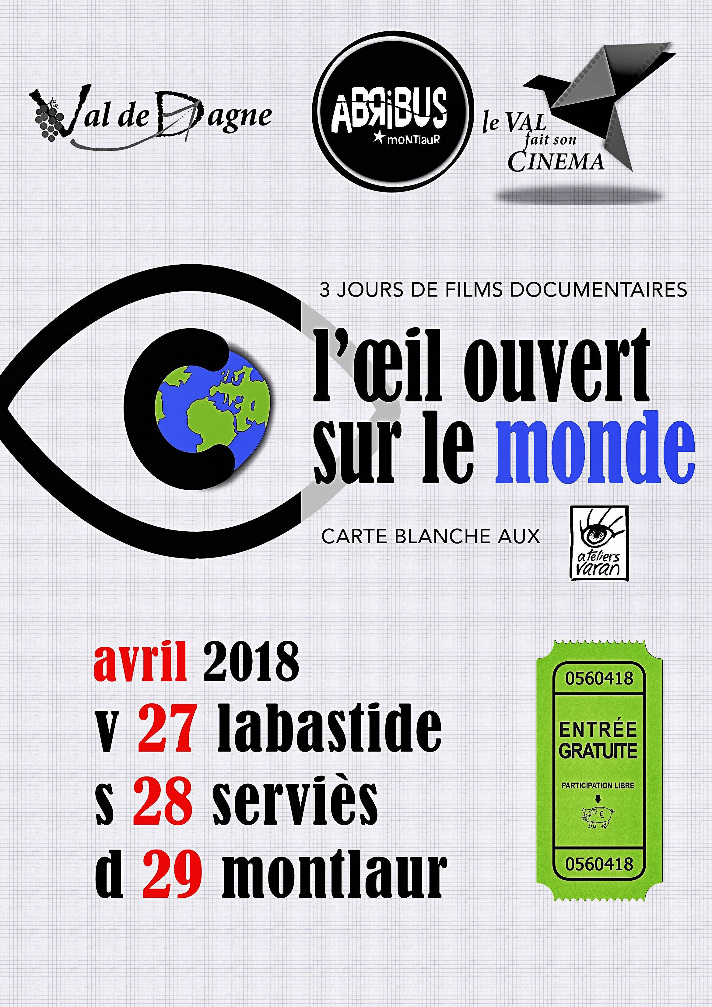 Le dimanche 29 avril 2018 à partir de 20h30 à Montlaur : projection de films réalisés dans le cadre du Master 2 Cinéma et audiovisuel "Le documentaire de création avec les Ateliers Varan" organisé avec l'université Paul-Valéry de Montpellier à Lasalle en Cévennes. Au programme :