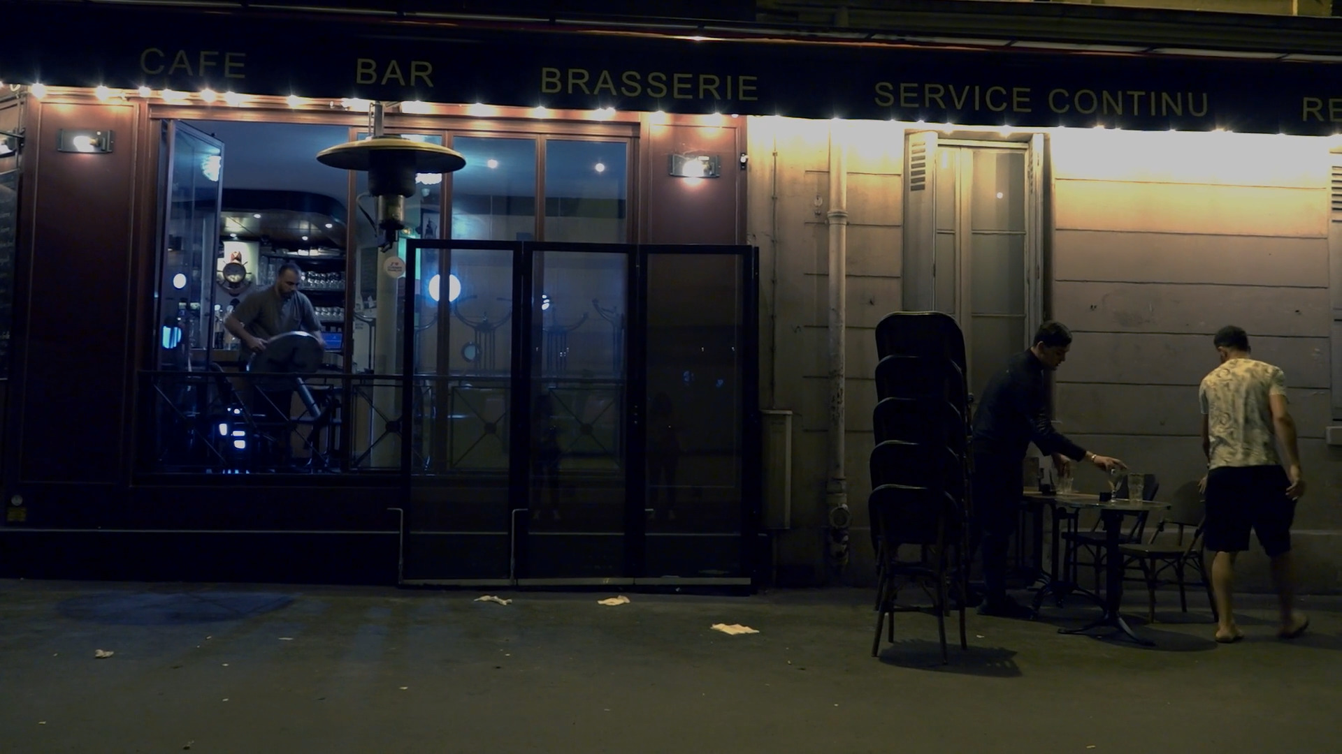 Tous les jours à six heures du matin, Yazid dispose la terrasse du café des Banques. À deux heures du matin quand la terrasse doit de nouveau être rangée, Yazid empile tables et chaises dans la remise. Quatre plus tard, il faut déjà recommencer.