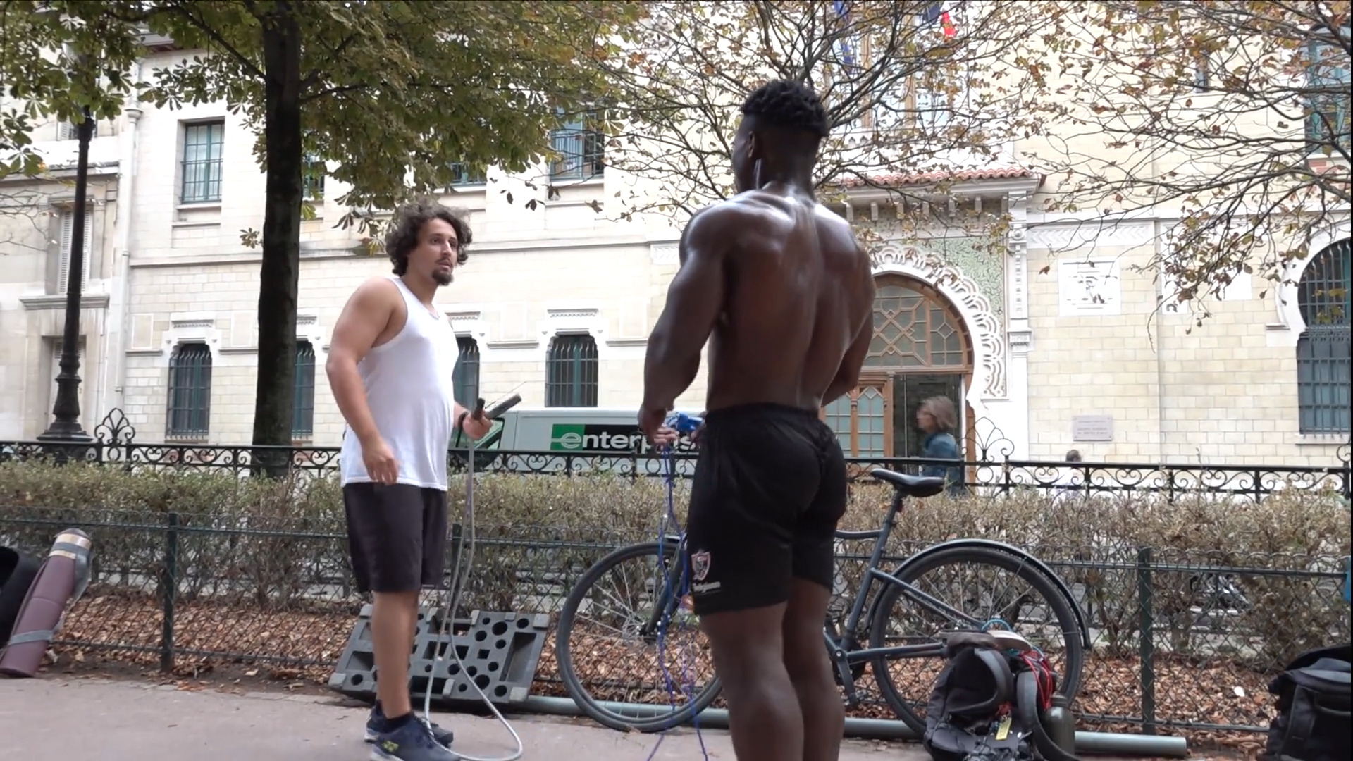 Jires, un jeune camerounais, après le travail sur les chantiers vient s’entrainer au Jardin du Luxembourg.