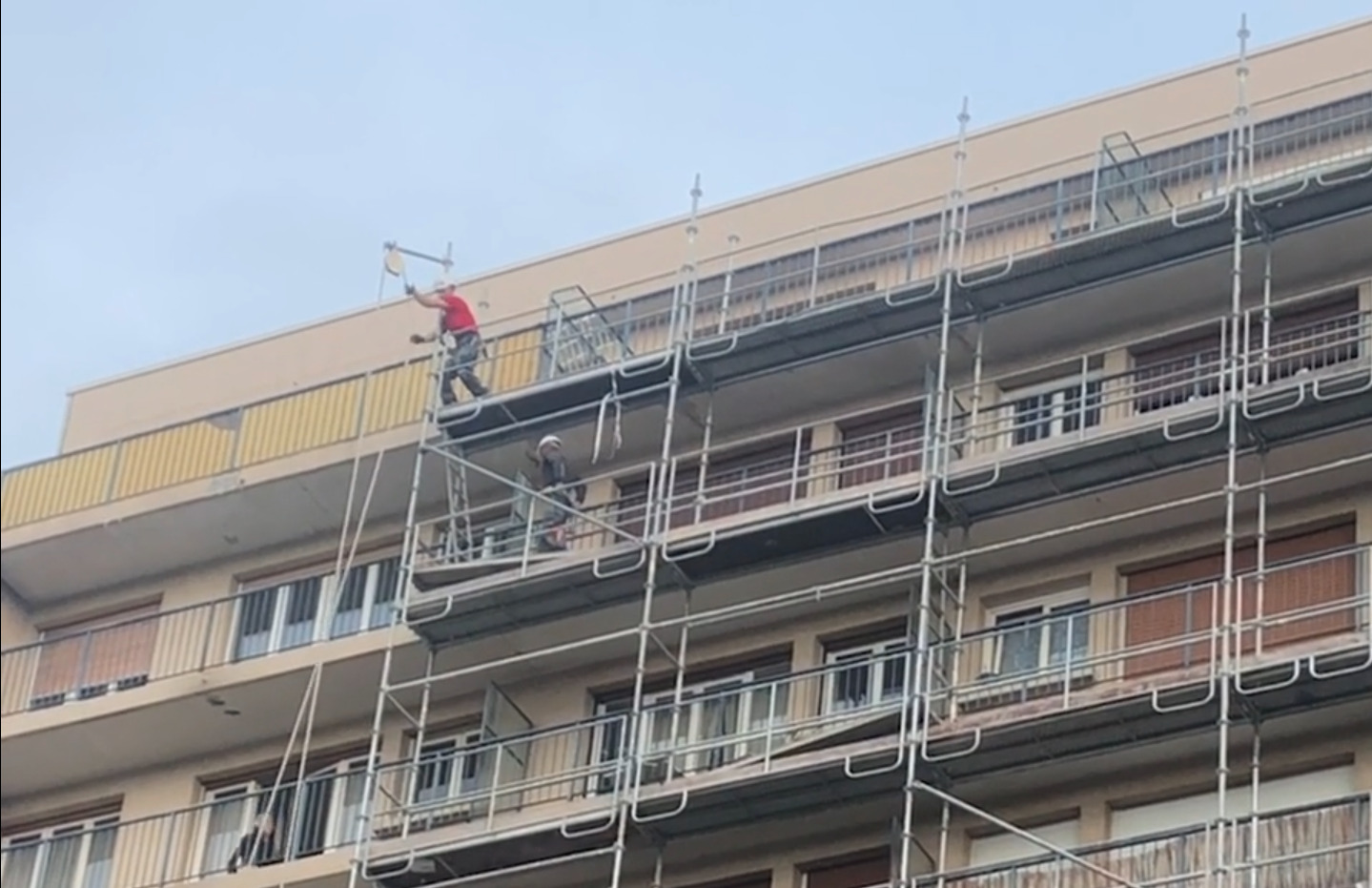 Ouvriers et bâtiments dans Paris.