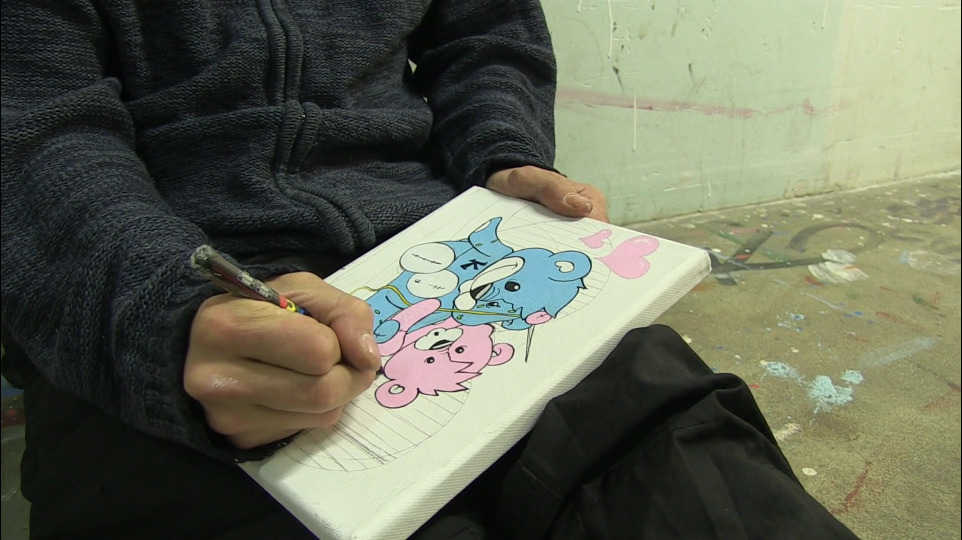 K. est un enfant des Frigos. Il dessine souvent assis dans un couloir. L'ours en peluche de son enfance raconte une histoire surprenante, au-delà des apparences.
