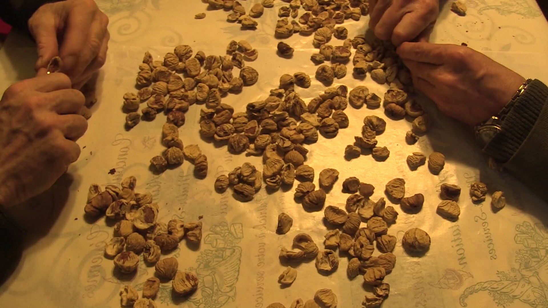 Jean et Claude Fayet, castanéiculteurs et producteurs de fromage de chèvre dans les Cévennes, se consacrent chaque jour, avec passion et dévotion à leurs terres et à leurs animaux. Le temps s’arrête l’espace d’un instant quand ils trient et enlèvent méticuleusement la peau des châtaignes sèches. On parle alors de l’histoire de la famille, de politique agricole, des souvenirs d’enfance…