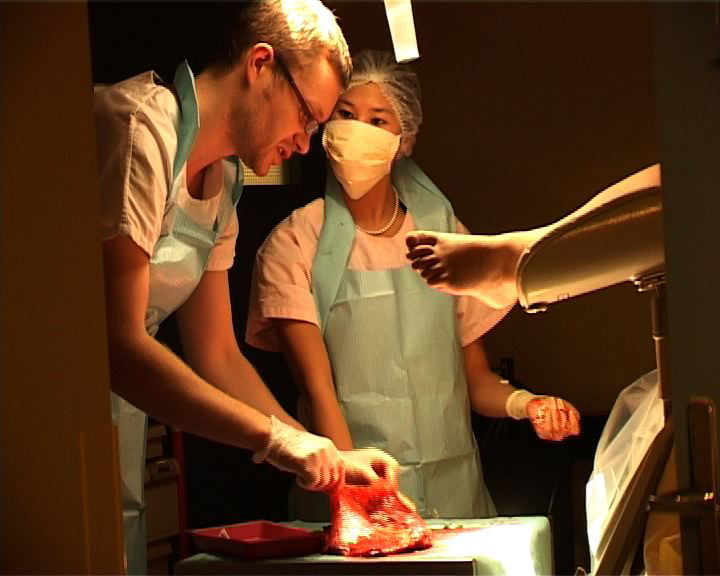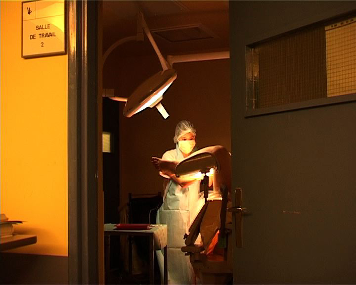 Que se passe-t-il derrière ces portes, ces couloirs d'hôpital aux couleurs saturées ? Qu'éprouve-t-on à cet endroit, avec ces jeunes femmes en tenue rose passé, dans le battement et le souffle des machines, la douleur ? Parmi les tuyaux, les poches, les lumières, les chiffres et les tracés des appareils et des alarmes ? Les cris, l’abstraction des vocables techniques, les tensions, les frottements, et la douceur aussi des gestes silencieux ? Quels interstices faut-il regarder pour assister à une cérémonie secrète faite de douleur, d'efforts, de concentration, de rythmes qui s'accélèrent, de voix qui encouragent, et où la délivrance ne va pas sans le regard d’adieu minutieux à ce qu'on doit laisser ?