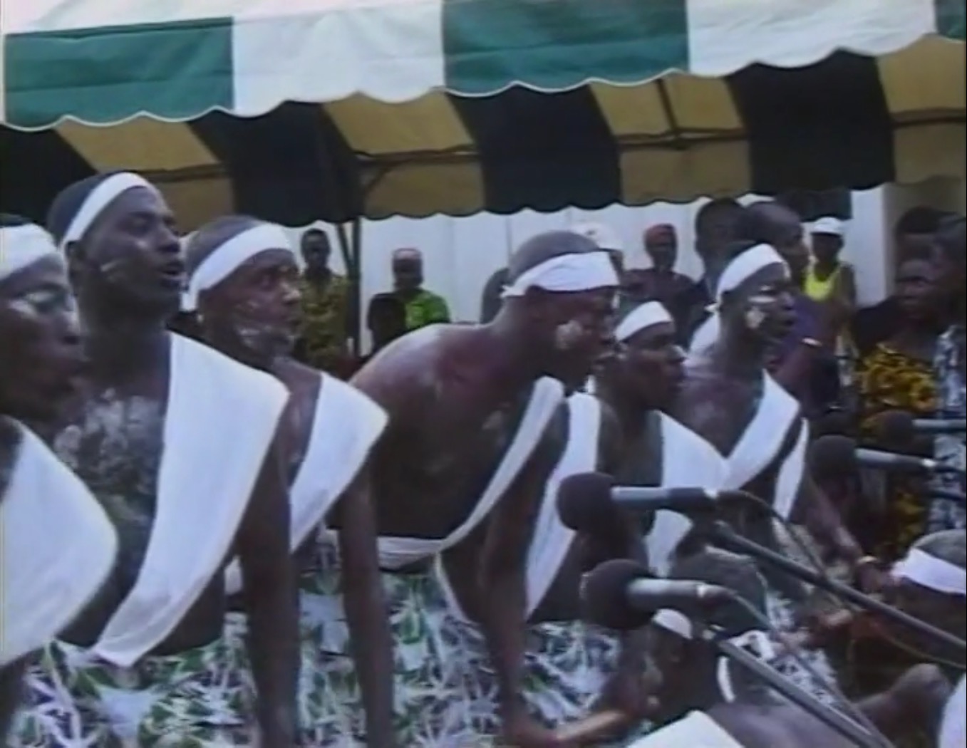 Une légende raconte qu'une vieille dame est partie un jour dans la brousse pour y chercher des tubercules. Elle erre pendant des heures dans la forêt et s'arrête quand elle entend d'étranges sons de tam-tam...